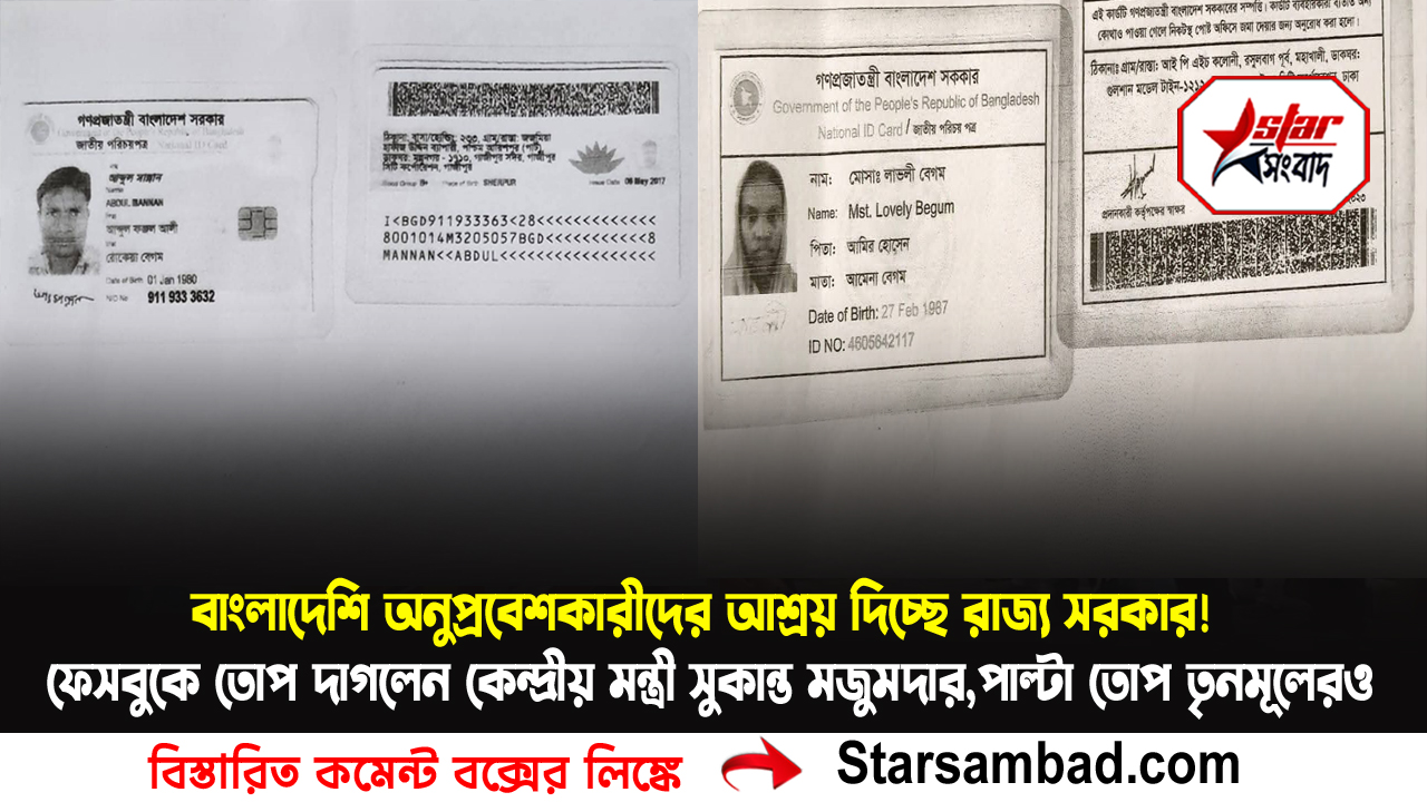 বাংলাদেশি অনুপ্রবেশকারীদের আশ্রয় দিচ্ছে রাজ্য সরকার!” — ফেসবুকে তোপ দাগলেন কেন্দ্রীয় মন্ত্রী সুকান্ত মজুমদার,পাল্টা তোপ তৃনমূলেরও