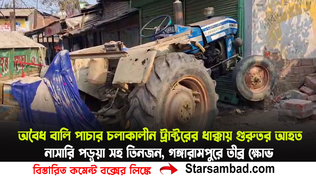 অবৈধ বালি পাচার চলাকালীন ট্রাক্টরের ধাক্কায় গুরুতর আহত নাসারি পড়ুয়া সহ তিনজন, গঙ্গারামপুরে তীব্র ক্ষোভ