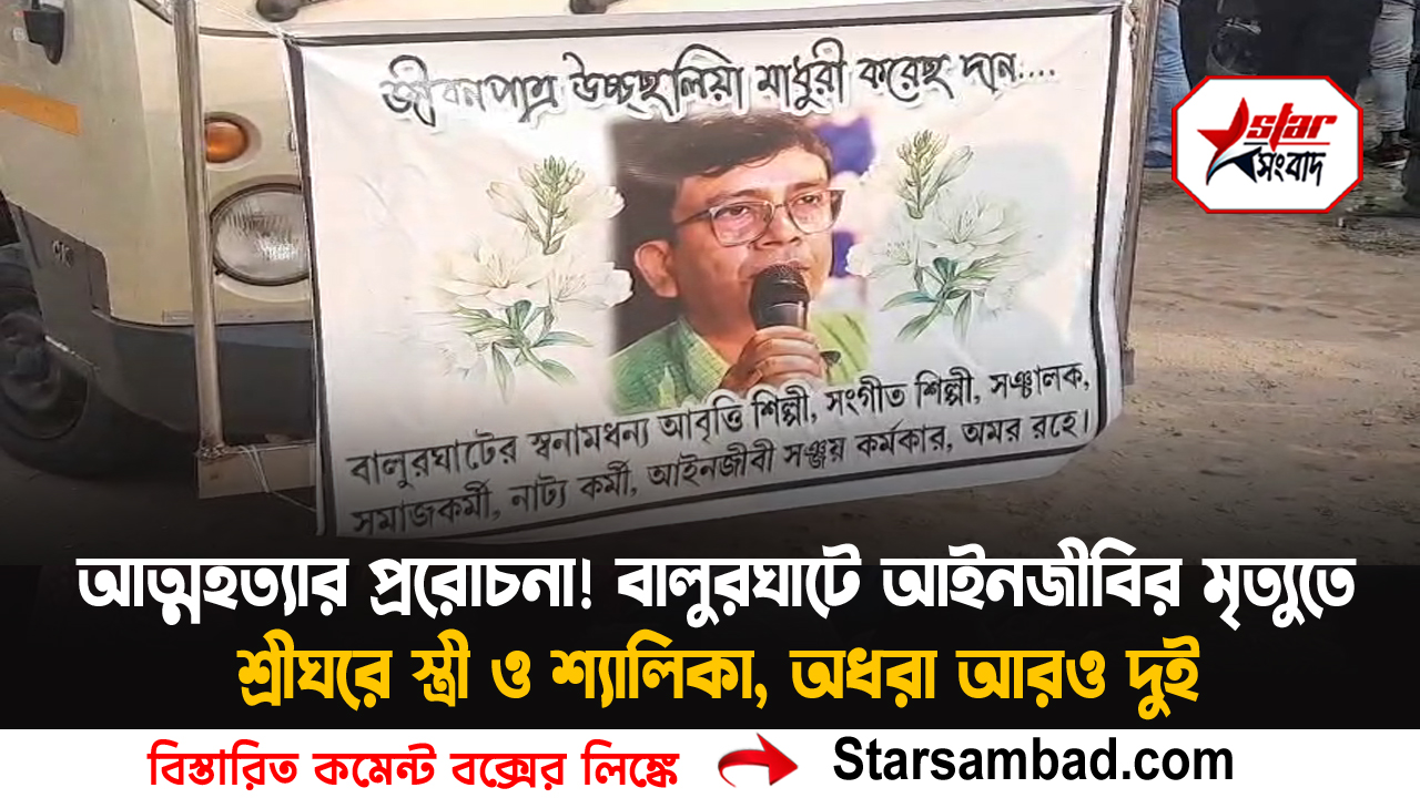 Home দক্ষিণ দিনাজপুর বালুরঘাট আত্মহত্যার প্ররোচনা! বালুরঘাটে আইনজীবির মৃত্যুতে শ্রীঘরে স্ত্রী ও শ্যালিকা, অধরা আরও দুই