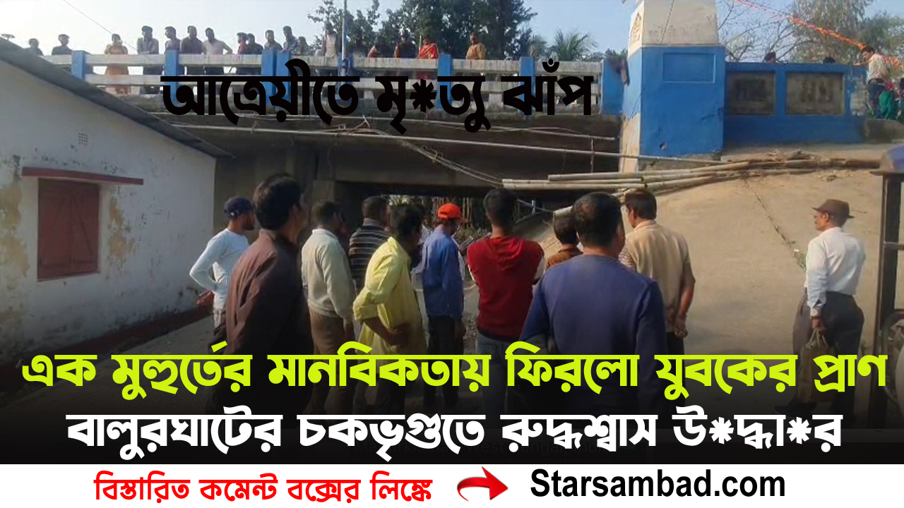 বালুরঘাট, ৭ ফেব্রুয়ারী —- মৃ*ত্যুকে হাতছানি দিয়েও ফিরলেন জীবনের পথে। শনিবার বিকেলে বালুরঘাট শহরের চকভৃগু এলাকায় আত্রেয়ী নদীর ব্রীজে ঘটে যাওয়া সেই ঘটনাকে ঘিরে এখনও আতঙ্ক ও আবেগে কাঁপছে এলাকা। আ*ত্মহ*ত্যা*র উদ্দেশ্যে নদীতে ঝাঁপ দিয়েছিলেন এক যুবক। কিন্তু এক সাধারণ গাড়িচালকের অসাধারণ তৎপরতায় শেষ পর্যন্ত বাঁচল একটি প্রাণ।