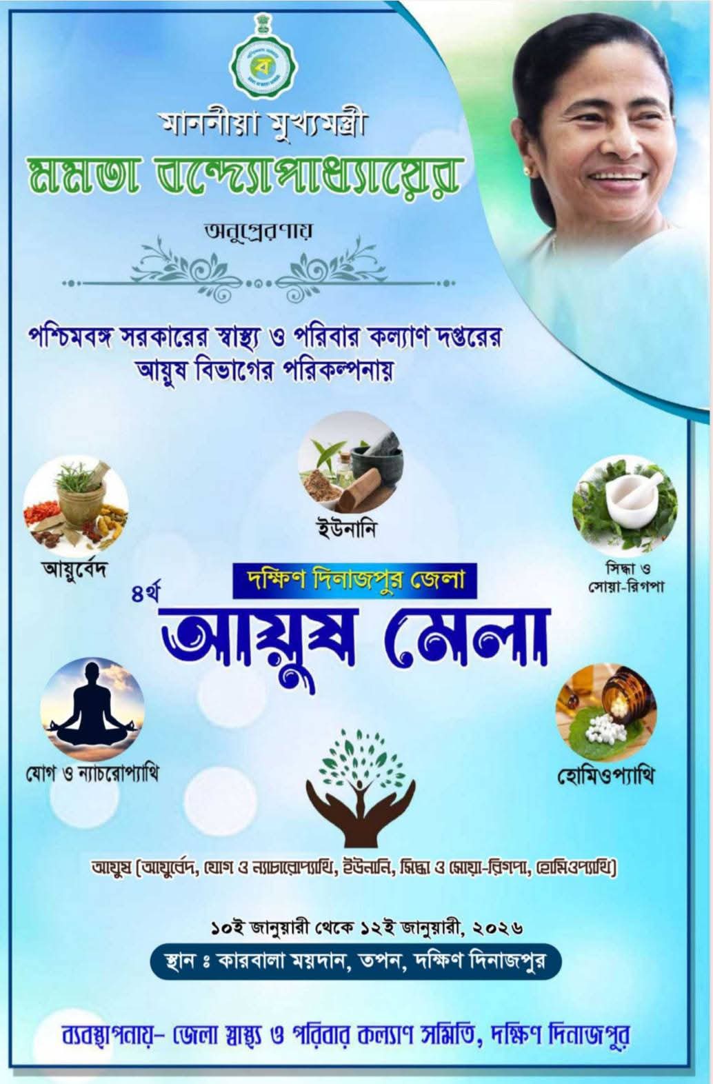 ৪র্থ আয়ুষ মেলা) অনুষ্ঠিত হচ্ছে আগামী ১০ই জানুয়ারি থেকে ১২ই জানুয়ারি২০২৬।