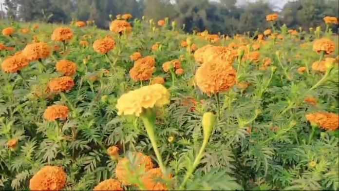 আর্থিক ভাবে অনেক বেশি লাভজনক হওয়াতে গাঁদা ফুল চাষে আগ্রহ বাড়ছে কালিয়াগঞ্জে আজকের প্রজন্মের কৃষকদের। গৃহস্থ বাড়ির আনাচেকানাচে গাঁদা ফুলের গাছ দেখা যায়। কিন্তু, কৃষি ব্যবস্হার আধুনিকিকরণের সঙ্গেই বিবর্তনের ছোঁয়া লেগেছে গাঁদা ফুল চাষে। আর্থিক ভাবে লাভজনক এবং উঁচু পতিত জমিতে চাষ সম্ভব বলে এখন প্রথাগত চাষবাসের পাশাপাশি বহু কৃষক বানিজ্যিক ভাবে গাঁদা ফুলের চাষে আগ্রহী হচ্ছেন। উত্তর দিনাজপুর জেলার কালিয়াগঞ্জ ব্লকের মালগাঁও অঞ্চলের সাহেবঘাটা এলাকার শুভ সরকার ও বুবাই সরকারের মতো বহু কৃষক এখন গাঁদা ফুল চাষের মাধ্যমে আর্থিক ভাবে সাবলম্বী হয়ে উঠেছেন।একদিকে বিয়ের মরসুম তার পাশাপাশি সামনেই সরস্বতী প্রজা তার কারণে গাঁদা ফুলের চাহিদা প্রচুর ।গাদা ফুল চাষি শুভ সরকার বুবাই সরকাররা জানান তাদের জমিতে তিন প্রজাতির গাঁদা ফুলের গাছ লাগিয়েছে।ভালোই ফলন হয়েছে।তাদের ফুল কালিয়াগঞ্জের বিভিন্ন বাজারে যায় পাশাপাশি রায়গঞ্জ, মালদা,বালুরঘাট সহ পাশের রাজ্যে বিহারে যায়।কেজি ৪০ টাকা দরে পাইকারি হিসাবে বিক্রি করে।ফলে প্রথাগত কৃষি কাজের পাশাপাশি গাঁদা ফুল চাষ করে ভালোই লাভ হচ্ছে বলে জানান কৃষকেরা।