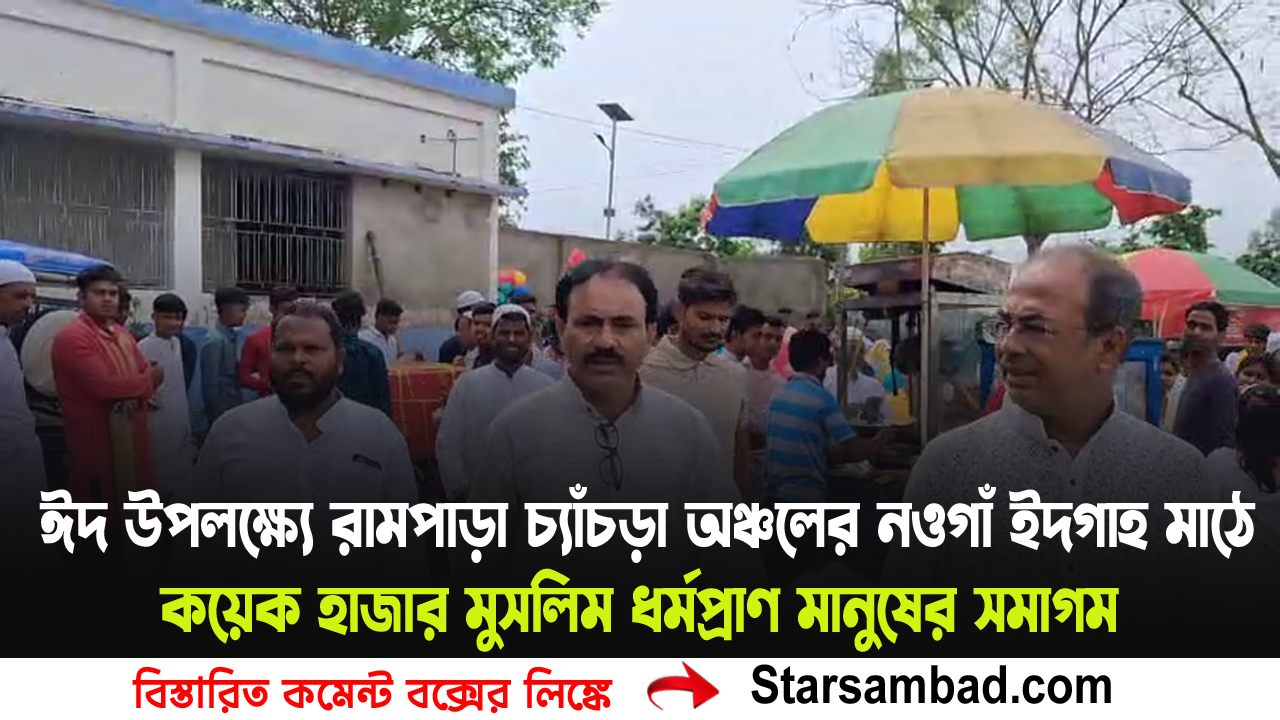শনিবার ঈদ উপলক্ষ্যে গঙ্গারামপুর বিধানসভার তপন ব্লকের রামপাড়া চ্যাঁচড়া অঞ্চলের নওগাঁ ইদগাহ মাঠে কয়েক হাজার মুসলিম ধর্মপ্রাণ মানুষের সমাগম ঘটে। সকাল থেকেই ইদগাহ মাঠে ভিড় জমতে থাকে এবং নির্ধারিত সময়ের মধ্যে শান্তিপূর্ণভাবে সম্পন্ন হয় ঈদের নামাজ। নামাজ শেষে একে অপরকে শুভেচ্ছা জানিয়ে উৎসবের আনন্দে মেতে ওঠেন উপস্থিত সকলেই।