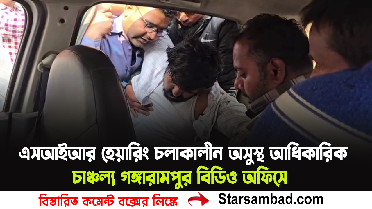 জানা গেছে, অসুস্থ আধিকারিকের নাম অমিয় রঞ্জন রায়। তিনি গঙ্গারামপুর বিডিও অফিসের কর্মী। বুধবার সকাল থেকেই এসআইআর হেয়ারিং উপলক্ষে বিডিও অফিস চত্বরে প্রচুর মানুষ ভিড় জমান। নির্ধারিত সময় অনুযায়ী কর্তব্যরত আধিকারিকরা শুনানির কাজ শুরু করেন। অন্যান্য কর্মীদের সঙ্গে অমিয় রঞ্জন রায়ও হেয়ারিং নেওয়ার দায়িত্বে ছিলেন।