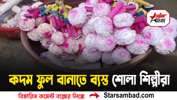 শোলা শিল্পী দ্বারা তৈরি কদম ফুল