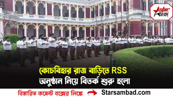 কোচবিহার : কোচবিহার রাজ বাড়িতে RSS অনুষ্ঠান নিয়ে বিতর্ক শুরু হলো । রবিবার RSS এর ১০০ বছর পূর্তি উপলক্ষে ঐতিহ্যবাহী রাজবাড়ি থেকে বর্ণাঢ্য শোভাযাত্রা বের করা হয়। কোচবিহারের বিভিন্ন গুরুত্বপূর্ণ রাস্তা পরিক্রমা করে একই স্থানে এসে শোভাযাত্রা শেষ করে। আর এনিয়ে শুরু হয়েছে বিতর্ক। গোটা বিষয়টি নিয়ে আক্রমণ করেছে তৃনমূল। এই নিয়ে তৃণমূল কংগ্রেস মুখপাত্র পার্থ প্রতিম রায় বলেন এর আগে কোনদিনও রাজবাড়ীতে এ ধরনের কোন অনুষ্ঠান হয়নি কিভাবে আর্কোলজি সার্ভে অফ ইন্ডিয়াএর অনুমতি দিল তা নিয়ে একটি প্রশ্ন রয়েছে। যদিও এ বিষয় নিয়ে বিজেপির নেতৃত্ব কোন মন্তব্য করতে না চাইলে আরএসএস কোচবিহার সঞ্চালক বক্তব্য অনুমতি নিয়েই অনুষ্ঠানটি করা হয়েছে।