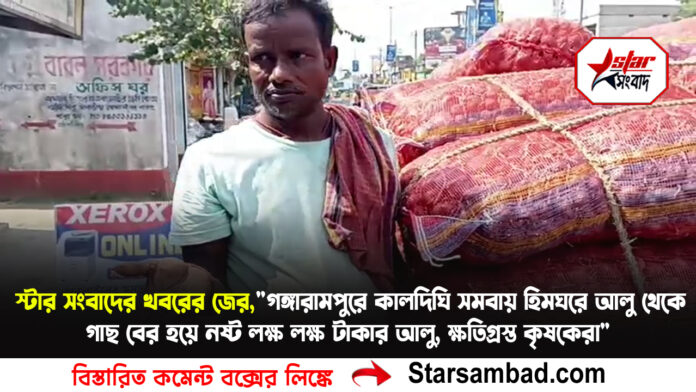 স্টার সংবাদের খবরের জের,”গঙ্গারামপুরে কালদিঘি সমবায় হিমঘরে আলু থেকে গাছ বের হয়ে নষ্ট লক্ষ লক্ষ টাকার আলু, ক্ষতিগ্রস্ত কৃষকেরা” মুখ্যমন্ত্রীর নির্দেশে ছুটে আসলেন রাজ্য থেকে দপ্তরের আধিকারিকেরা, তদন্ত করে দেখে দোষীদের বিরুদ্ধে কঠোর ব্যবস্থা নেওয়ার আশ্বাস, ঘটনা নিয়ে সরব হয়েছেন মন্ত্রীও, ক্যামেরা দেখেই পালালেন সমবায়ের ম্যানেজার শীতল চক্রবর্তী বালুরঘাট ১৯ নভেম্বর দক্ষিণ দিনাজপুর। “সমবায় হিমঘরে আলু রেখে সর্বনাশের মুখে জেলার কৃষকেরা”স্টার সংবাদের এই খবর প্রকাশের পরে তদন্ত করতে কলকাতা থেকে ছুটে আসলো সমবায় দপ্তরের আধিকারিকেরা গঙ্গারামপুরের কালদিঘি বহুমুখী হিমঘরে। ছুটে আসলেন জেলা সমবায় দপ্তরের আধিকারিক থেকে শুরু করে একাধিক একাধিক আধিকারিকেরা, ম্যানেজারের ভূমিকায় অসন্তুষ্ট প্রকাশ করে কৃষকদের পাশে থাকার আশ্বাস দিলেন দপ্তরের আধিকারিকেরা।এদিকে স্টার সংবাদের ক্যামেরা দেখেই পালাতে ব্যস্ত সমবায়ের ম্যানেজার অধীর দেবশর্মা। ক্ষতিপূরণের দাবিতে যখন আলু থেকে গাছ বের হয়ে গিয়ে আলু নষ্ট হয়ে যাওয়া কৃষকেরা মুখ্যমন্ত্রী দ্বারস্থ হয়েছেন তখন তারা সমবায়ের ম্যানেজার পরিবর্তনের পাশাপাশি ক্ষতিপূরণ দাবীতে মুখ্যমন্ত্রীর দ্বারস্থ হয়েছেন তাই ১০০ এর উপরে ক্ষতিগ্রস্ত কৃষকেরা বলে সূত্রের খবর। পাশাপাশি রাজ্যের মন্ত্রী জানালেন, তদন্ত বিষয়টি বিবেচনা করবে। ক্ষতিপূরণের বিষয়টি নিয়ে গুরুত্ব সহকারে দেখা হচ্ছে বলে জানালেন জেলার এআরসিএস। দক্ষিণ দিনাজপুর জেলার মধ্যে গঙ্গারামপুরের সমবায় হিমঘরে ভাই ১০হাজারের উপর কৃষক আড়াই লক্ষ বস্তা আলু সংরক্ষণ করে থাকে। বিগত দিনেই সমবায়ের আলো রেখে এত পরিমানে ক্ষতির মুখে কোনদিন আগে বলে জানা গেছে। কালদিঘি সমবায় সমবায় হিমঘরে আলুরেখে ক্ষতিগ্রস্ত হওয়া কৃষক পরেশ বসাক, ও আরেকজন কৃষক অভিযোগ করে বলেন,”এক ক্ষতিপূরণ হবার নয়,তাই মুখ্যমন্ত্রী থেকে বিভিন্ন জায়গায় অভিযোগ জানানো হয়েছে।আমরা চাই ক্ষতিপূরণ।” এদিকে সমবায় হিমঘরের বেহাল অবস্থা নিয়ে স্টার সংবাদে খবর করতেই মুখ্যমন্ত্রীর নজরে আসে। রবিবার রাজ্য সমবায় দপ্তর থেকে কলকাতার আধিকারিক গৌতম কুমার দে চিফ এক্সিকিউটিভ ম্যানেজার সমবায় বিভাগ কলকাতা, ও জেলা এআরসিএফের দপ্তরের আধিকারিক সনিত কুমার দাস রবিবারের দিনে ছুটে আসেন। এসে তিনি দপ্তরের বিভিন্ন জায়গা আলু নষ্ট হবার বিষয়ে খোঁজখবর নিয়ে এক্সিকিউটিভ ম্যানেজার সমবায় কালদিঘি হিমঘরের ম্যানেজার অধীর দেবশর্মা ভূমিকায় চরম ক্ষোভ প্রকাশ করেন।দীর্ঘদিন ধরে এসি মেশিন সমবায়ের হিমঘরে ব্লকে খারাপ থাকলেও কেন ওই ম্যানেজার এআরসিএস দপ্তর ও রাজ্যে জানাইনি তা নিয়েও ভৎসনার মুখের উপরের দিন। সমবায় দপ্তরে