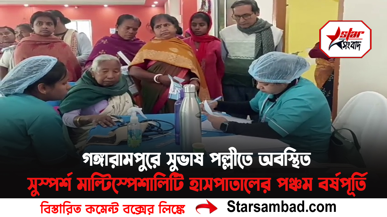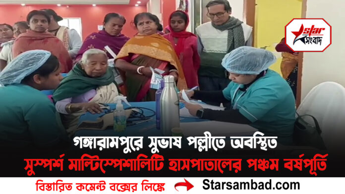 সমাজসেবার মধ্য দিয়ে গঙ্গারামপুরে সুভাষ পল্লীতে অবস্থিত” সুস্পর্শ” মাল্টিস্পেশালিটি হাসপাতালের পঞ্চম বর্ষপূর্তি উদ্‌যাপন গঙ্গারামপুর স্টেডিয়ামে
