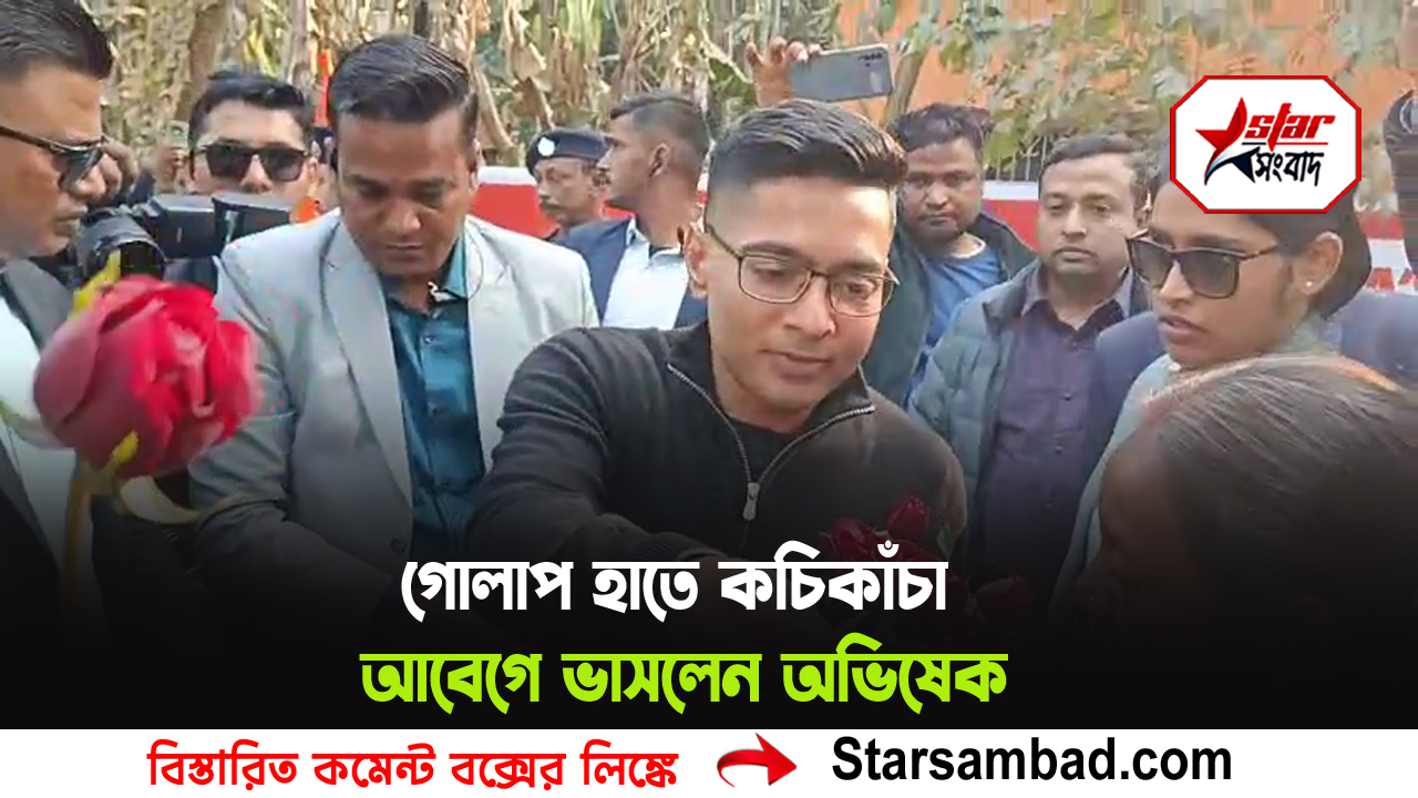 বালুরঘাট, ৭ জানুয়ারী —– পতিরামের লক্ষ্মীপুরে বুধবার যেন আচমকাই বদলে গেল সকালের চেনা ছবি। রাজনৈতিক কর্মসূচির তাড়া উপেক্ষা করে গ্রামের ঢোকার মুখেই থাকা একটি প্রাথমিক স্কুলে হঠাৎই ঢুকে পড়লেন ডায়মন্ডহারবারের সাংসদ ও তৃণমূল কংগ্রেসের সর্বভারতীয় সাধারণ সম্পাদক অভিষেক বন্দ্যোপাধ্যায়। সামনে তখন সার বেঁধে দাঁড়িয়ে কচিকাঁচারা—হাতে গোলাপ, চোখে বিস্ময়। শিশুদের সেই নিঃশর্ত ভালোবাসার অভ্যর্থনায় আবেগে আপ্লুত হয়ে পড়েন সাংসদ।