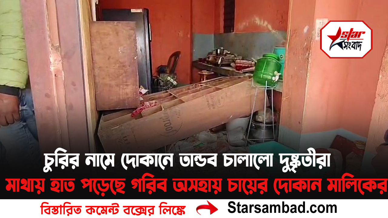 একই রাতে পরপর তিনটি দোকানে চুরির নামে তান্ডব চালালো দুষ্কৃতীরা।সাটার ভেঙ্গে চায়ের দোকানে ঢুকে সমস্ত কিছু জিনিস ভাঙচুর করে পালিয়ে যায় চোর।চোখের সামনে দোকানের সমস্ত জিনিস তছনছ দেখে মাথায় হাত পড়েছে গরিব অসহায় চায়ের দোকান মালিকের।শনিবার রাতে এই ঘটনাটি ঘটেছে নিউ জলপাইগুড়ি থানার অন্তর্গত ফুলবাড়ী ২নম্বর অঞ্চলের পুটিমারী ক্যানেল মোড় এলাকায়।খবর পেয়ে নিউ জলপাইগুড়ি থানার পুলিশ ঘটনাস্থলে পৌঁছে গোটা ঘটনার তদন্ত শুরু করেছে।জানা গিয়েছে দোকান থেকে কোন কিছু জিনিস চুরি না হলেও নষ্ট করে ফেলা হয়েছে খাবারের জিনিস দোকানে থাকা ফ্রিজ মিকচার মেশিন সহ একাধিক জিনিসপত্র।