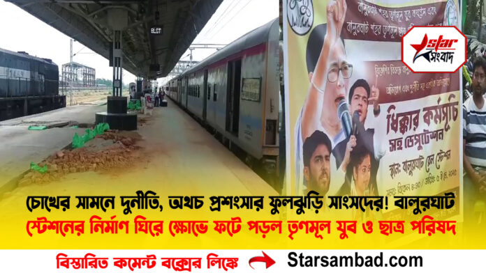 চোখের সামনে দুর্নীতি, অথচ প্রশংসার ফুলঝুড়ি সাংসদের! বালুরঘাট স্টেশনের নির্মাণ ঘিরে ক্ষোভে ফেটে পড়ল তৃণমূল যুব ও ছাত্র পরিষদ