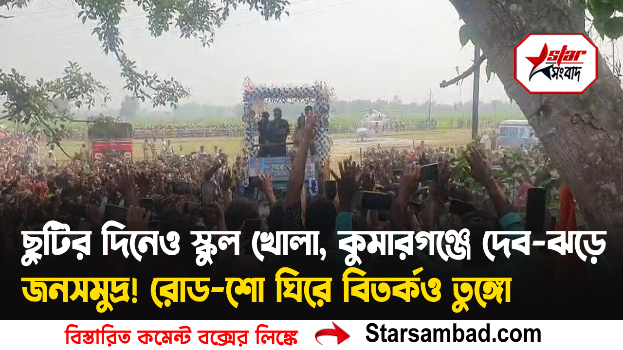 ছুটির দিনেও স্কুল খোলা, কুমারগঞ্জে দেব-ঝড়ে জনসমুদ্র! রোড-শো ঘিরে বিতর্কও তুঙ্গে