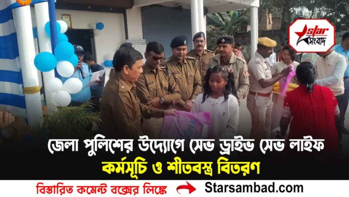জেলা পুলিশের উদ্যোগে ‘সেভ ড্রাইভ সেভ লাইফ’ কর্মসূচি ও শীতবস্ত্র বিতরণ
