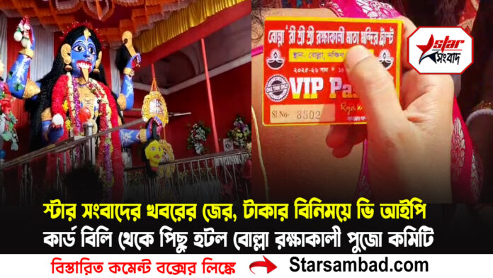 স্টার সংবাদের খবরের জের, টাকার বিনিময়ে ভি আইপি কার্ড বিলি থেকে পিছু হটল বোল্লা রক্ষাকালী পুজো কমিটি। পুলিশি নিরাপত্তায় দেবি দর্শন ভক্তদের