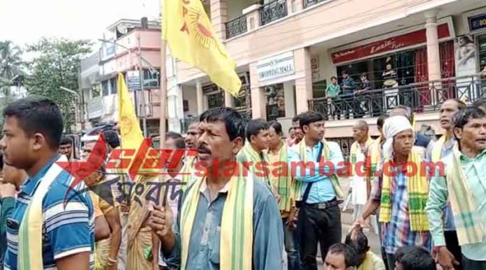 কোচবিহার :- তিন দফা দাবিকে সামনে রেখে কোচবিহার রাজবাড়ির সামনে বিক্ষোভ দেখিয়ে স্মারকলিপি প্রদান করল দি গ্রেটার কোচবিহার পিপলস অ্যাসোসিয়েশন । সোমবার দি গ্রেটার কোচবিহার পিপলস অ্যাসোসিয়েশন এর প্রান্তিক বাজার দিনহাটা কোচবিহার দিনহাটা 1 নম্বর ব্লক কমিটির পক্ষ থেকে এ দিনের কর্মসূচি গ্রহণ করা হয় । এদিন কোচবিহার শহরের কল্যাণ ভবন এর সামনে থেকে একটি মিছিল করে কোচবিহার শহরের বিভিন্ন পথ ধরে রাজবাড়ী সামনে পৌঁছান । এরপর রাজবাড়ির গেটের সামনে তারা বিক্ষোভ দেখান পরবর্তীতে তাদের কয়েকজন সদস্য গিয়ে স্মারকলিপি প্রদান করেন । তাদের দাবিগুলোর মধ্যে কোচবিহার গোসানিমারি রাজপাট থেকে কর্মরত দুজন রাজবংশী যুবককে বাদ দেওয়া হয়েছে তাদের পূর্ণ নিয়োগ করতে হবে। রাজবাড়ীতে পুনরায় নতুন করে রাজবংশীদের নিয়োগ করতে হবে । একই সাথে রাজবাড়ী লুটপাট হবা সম্পদ গুলো পুনরুদ্ধার করে রাখতে হবে । এই দাবিগুলো নিয়ে তাদের আজকে এই কর্মসূচি গ্রহণ করা হয় ।