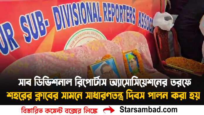 ২৬শে জানুয়ারি প্রজাতন্ত্র দিবস উপলক্ষে দক্ষিণ দিনাজপুর জেলার গঙ্গারামপুর সাব ডিভিশনাল রিপোর্টার্স অ্যাসোসিয়েশনের উদ্যোগে গঙ্গারামপুর শহরের ক্লাব প্রাঙ্গণের সামনে এক বর্ণাঢ্য অনুষ্ঠানের মাধ্যমে দিনটি যথাযোগ্য মর্যাদায় পালন করা হয়।