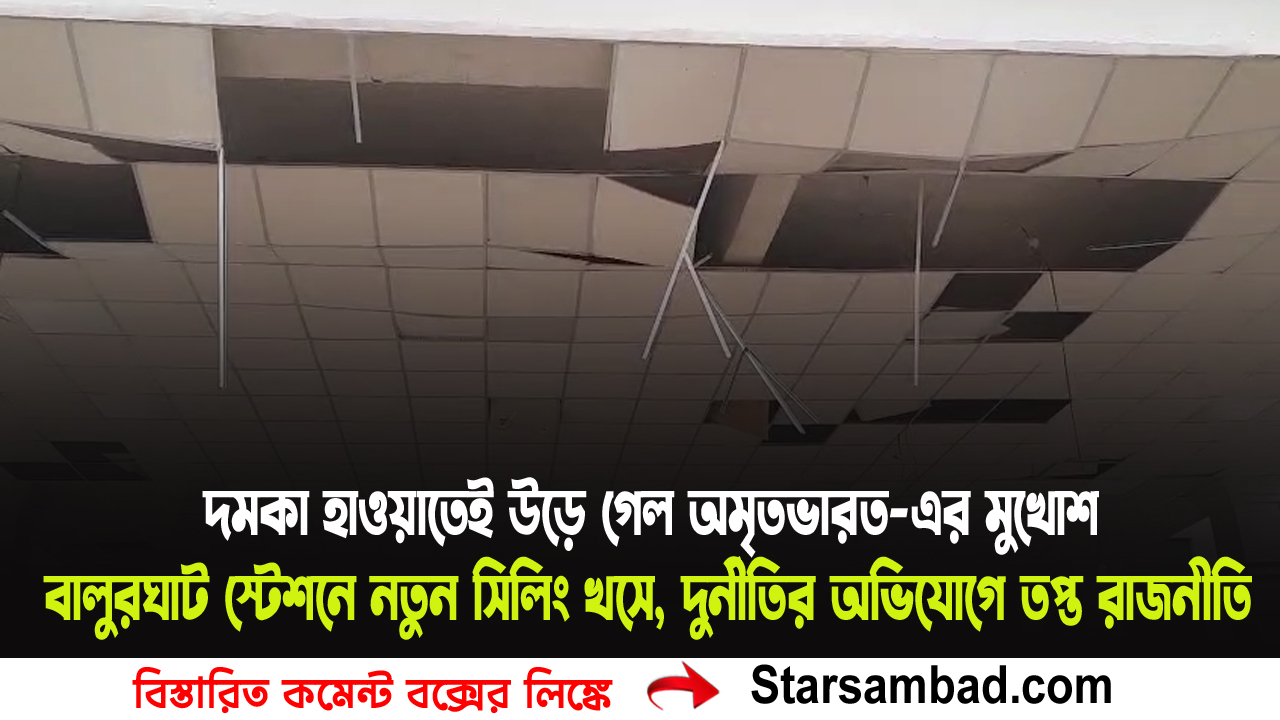 দমকা হাওয়াতেই উড়ে গেল অমৃতভারত-এর মুখোশ! বালুরঘাট স্টেশনে নতুন সিলিং খসে, দুর্নীতির অভিযোগে তপ্ত রাজনীতি