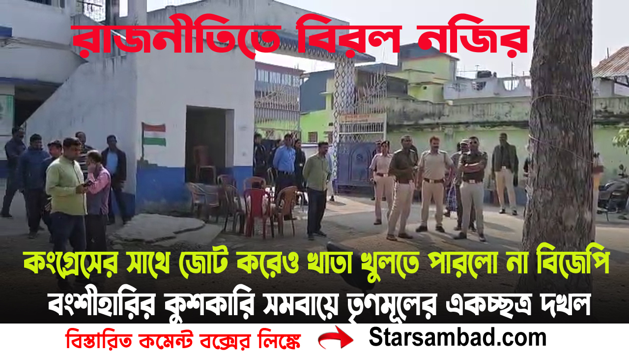 বালুরঘাট, ৮ ফেব্রুয়ারী — জেলা তো বটেই, রাজ্য কিংবা সারাদেশের রাজনীতিতেও বিরল নজির গড়ল দক্ষিণ দিনাজপুরের বংশীহারি ব্লকের কুশকারি সমবায় কৃষি উন্নয়ন সমিতির নির্বাচন। কংগ্রেসকে সঙ্গে নিয়ে, এমনকি বামফ্রন্টকেও পাশে রেখে জোট বেঁধেও তৃণমূল কংগ্রেসের সামনে সম্পূর্ণ ধরাশায়ী হল বিজেপি। বিধানসভা নির্বাচনের মুখে এই সমবায় ভোটে ৯-শূন্য ফলাফলে উচ্ছ্বাস ছড়িয়েছে ঘাসফুল শিবিরে।