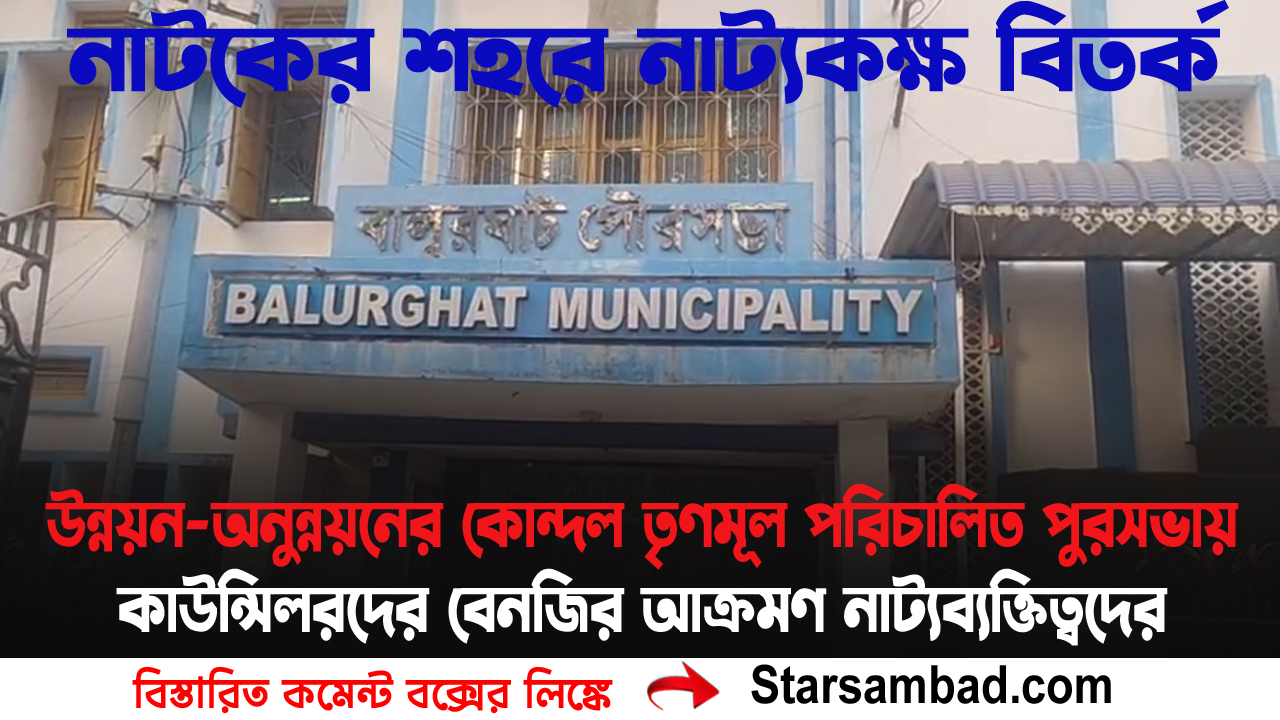 বালুরঘাট, ১৩ ফেব্রুয়ারী —– নাটকের শহর বালুরঘাটে এবার নাট্যমঞ্চ নয়, বিতর্কের কেন্দ্র পুরসভা। ফুড প্লাজা প্রকল্প থেকে ‘নাট্য সংবাদ কক্ষ’ বাদ দেওয়ার সিদ্ধান্ত ঘিরে তৃণমূল পরিচালিত পুরবোর্ডেই প্রকাশ্যে মতভেদ সামনে আসায় রাজনৈতিক ও সাংস্কৃতিক মহলে শুরু হয়েছে তীব্র চর্চা। শহরের উন্নয়ন নিয়ে হতাশ নাট্যব্যক্তিত্বরা, বেনজির আক্রমণ তৃণমূল কাউন্সিলরদের। যাকে ঘিরে রীতিমতো সরগরম এখন বালুরঘাট শহর।বিধানসভা নির্বাচনের আগে এই ঘটনাকে ঘিরে কিছুটা অস্বস্তিতে শাসকদল।
