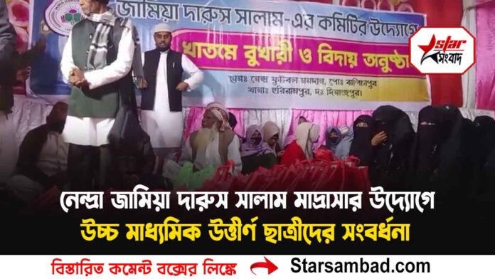 দক্ষিণ দিনাজপুর জেলার হরিরামপুর ব্লকের বাগিচাপুর গ্রাম পঞ্চায়েতের অন্তর্গত নেন্দ্রা মাদ্রাসা মাঠ প্রাঙ্গনে রবিবার নেন্দ্রা জামিয়া দারুস সালাম মাদ্রাসার উদ্যোগে এক সংবর্ধনা অনুষ্ঠানের আয়োজন করা হয়। মাদ্রাসা থেকে উচ্চ মাধ্যমিক পরীক্ষায় উত্তীর্ণ প্রায় ২৪ জন ছাত্রীকে আনুষ্ঠানিকভাবে সংবর্ধনা জানানো হয়।