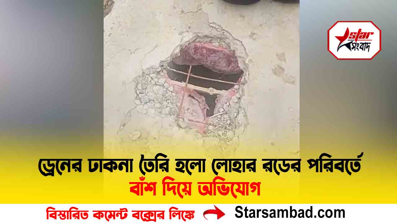 রডের বদলে বাতা! নিম্নমানের ড্রেন ঢাকনা তৈরির অভিযোগে শোরগোল গঙ্গারামপুরে।