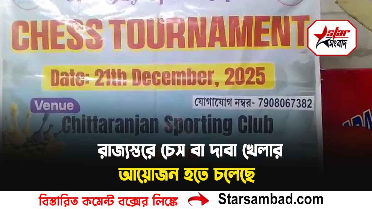 গঙ্গারামপুর পুরসভার ১৭ নম্বর ওয়ার্ডে পান সমিতিতে অবস্থিত অভিনব চেস একাডেমী তরফে রাজ্যস্তরে চেস বা “দাবা”খেলার আয়োজন হতে চলেছে,আগামী ২১ ডিসেম্বর রবিবার গঙ্গারামপুরের চিত্তরঞ্জন স্পোটিং এন্ড কালচারাল ক্লাবে,অংশগ্রহণ করতে দ্রুত যোগাযোগ করতে পারেন ৭৯০৮০৬৭৩৮২ নম্বরে শীতল চক্রবর্তী বালুরঘাট ১৬ই ডিসেম্বর দক্ষিণ দিনাজপুর। একটি অনুষ্ঠানের মধ্য দিয়ে একদিনের রাজ্যস্তরের চেস অর্থাৎ “দাবা টুর্নামেন্টের” আয়োজন হতে চলেছে আগামী ২১ডিসেম্বর ২০২৫রোজ রবিবার।দক্ষিণ দিনাজপুর জেলার গঙ্গারামপুর পুরসভার ১৭নম্বর ওয়ার্ডের পান সমিতিতে অবস্থিত অভিনব চেস”অর্থাৎ দাবা একাডেমির তরফে গঙ্গারামপুর শহরের চিত্তরঞ্জন স্পোর্টিং এন্ড কালচারাল ক্লাবে টুর্নামেন্টের আয়োজন হতে চলেছে।ওপেন ক্যাটাগরি, এস গ্রুপ আন্ডার ৮,আন্ডার ১০,আন্ডার ১২এন্ড আন্ডার ১৪ মতো ৬০জন প্রতিযোগী অংশগ্রহণ করবে সারা রাজ্য থেকে। গঙ্গারামপুর পুরসভা ১৭নম্বর ওয়ার্ডের পান সমিতিতে অবস্থিত অভিনব চেস একাডেমি সূত্রে জানা গেছে,”চেস বলতে এখানে “দাবা” খেলাকে বুঝানো হয়েছে। দাবা খেলা হচ্ছে বুদ্ধির খেলা।যা যে কোনো বয়স থেকেই যে কেউ অংশগ্রহণ করে বুদ্ধির প্রমাণ দিতে পারবে। ছোট বড় সকলেরই বুদ্ধির খেলা এই দাবা।এই ধরনের খেলার মধ্য দিয়ে মানুষজনদের চিন্তা ভাবনা অনেক বিকাশ ঘটে।পুরস্কার হিসেবে ওপেন ক্যাটাগরিতে ক্যাশ প্রাইস রয়েছে,চ্যাম্পিয়ন ও যে প্রথম হবে তাকে পুরস্কার দেওয়া হবে। সেই সঙ্গে যারা রানার হবে তাদেরকে ট্রফি দেওয়া হবে।সঙ্গে ক্যাস প্রাইজ দেওয়া হবে।এস গ্রুপেও পুরস্কার থাকছে।আসন সংখ্যা রয়েছে সীমিত।যদি কোন প্রতিযোগী এমন খেলায় অংশগ্রহণ করতে চায় তাহলে ৭৯০৮০৬৭৩৮২ এই নম্বরে যোগাযোগ করতে হবে। অভিনব চেস বা “দাবা” একাডেমীর তরফে সংস্থার কর্ণধর জয়ন্তী ঝা( চক্রবর্তী) বলেন,”উত্তরবঙ্গের মানুষজনেরা চেস বা “দাবা” খেলাতে খুব একটা মনোযোগী নন।তাই তিনি চাইছেন এমন খেলা উত্তরবঙ্গ জুড়ে ছড়িয়ে পড়ুক।প্রতিটি মানুষ তার বুদ্ধির প্রমাণ দেক সেই কারনেই এমন রাজ্যস্তরের খেলার আয়োজন করা হয়েছে।” এই সংস্থার উদ্যোগে এমন খেলায় যে উল্লেখযোগ্য ভিড় হবে সে বিষয়ে বলার কোন অপেক্ষা রাখে না।