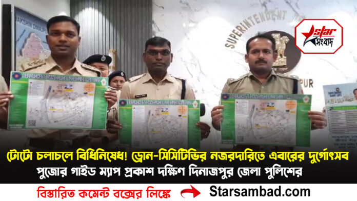 টোটো চলাচলে বিধিনিষেধ! ড্রোন-সিসিটিভির নজরদারিতে এবারের দুর্গোৎসব — পুজোর গাইড ম্যাপ প্রকাশ দক্ষিণ দিনাজপুর জেলা পুলিশের