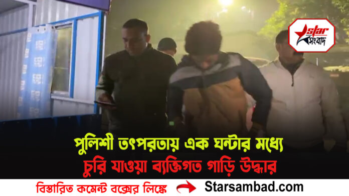 রায়গঞ্জ থানার আইসি বিশ্বাশ্রয় সরকার এর তৎপরতায় গাড়ির ভেতরে থাকা মোবাইল ট্র্যাক করে ইটাহার থেকে উদ্ধার গাড়িপুলিশী তৎপরতায় এক ঘন্টার মধ্যেই চুরি যাওয়া ব্যক্তিগত গাড়ি উদ্ধার