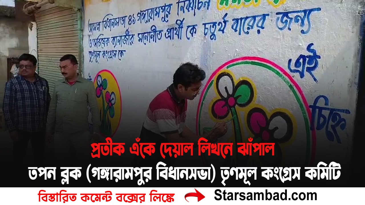প্রতীক এঁকে দেয়াল লিখনে ঝাঁপাল তপন ব্লক (গঙ্গারামপুর বিধানসভা) তৃণমূল কংগ্রেস কমিটি