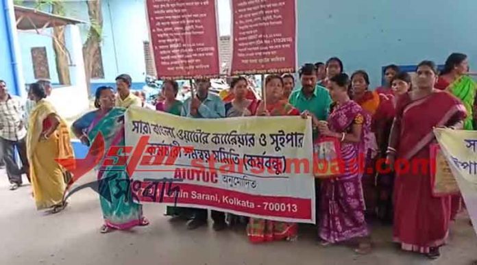 পিন্টু কুন্ডু, বালুরঘাট, ২০ জুন—— বকেয়া এরিয়া বিল প্রদান, অস্থায়ী থেকে স্থায়ী গ্রুপ ডি পদে পদোন্নতি, সকল কর্মবন্ধুদের সমকাজে সমবেতন সহ একাধিক দাবিতে আন্দোলন সারাবাংলা ওয়াটার ক্যারিয়ার সুইপার কর্মচারী সমন্বয় সমিতির। সোমবার একটি বিক্ষোভ মিছিল করে সংগঠনের সদস্যরা বালুরঘাটে জেলা শাসকের কাছে নিজেদের দাবি পত্র তুলে দিয়েছেন। বিক্ষোভকারীদের দাবি তাদের সমস্যার সমাধান না হলে আগামী দিনে আরও বড় আন্দোলনে নামবেন তারা।