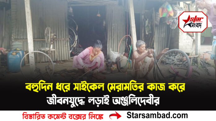 বহুদিন ধরে সাইকেল মেরামতির কাজ করে জীবনযুদ্ধে লড়াই অঞ্জলিদেবীর, পুজোর মুখে বাড়তি রোজগারের আশায় চালান চায়ের দোকানও