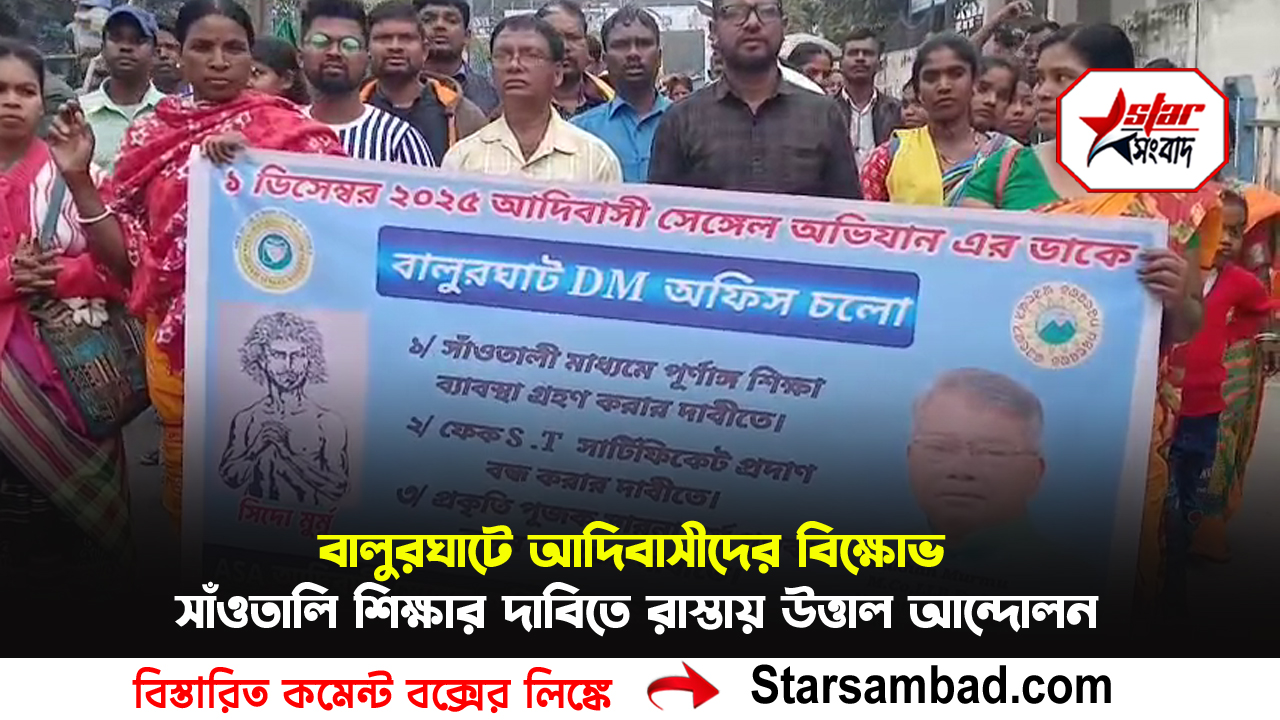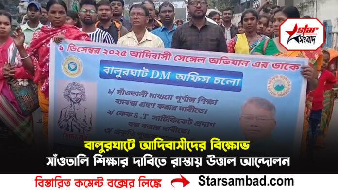 বালুরঘাটে আদিবাসীদের বিক্ষোভ, সাঁওতালি শিক্ষার দাবিতে রাস্তায় উত্তাল আন্দোলন
