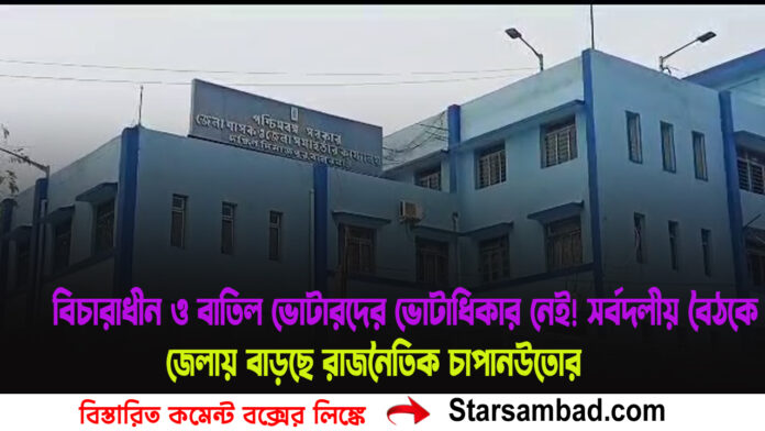 বালুরঘাট, ১৯ মার্চ —– দক্ষিণ দিনাজপুরে নির্বাচন ঘিরে শুরু হল নতুন বিতর্ক। বিচারাধীন ও বাতিল ভোটাররা আসন্ন নির্বাচনে ভোট দিতে পারবেন না—বৃহস্পতিবার জেলা প্রশাসনিক ভবনে অনুষ্ঠিত সর্বদলীয় বৈঠকে এমনই স্পষ্ট বার্তা দিলেন নির্বাচনী পর্যবেক্ষকরা। আর সেই ঘোষণার পর থেকেই রাজনৈতিক মহলে জোর চর্চা শুরু হয়েছে।