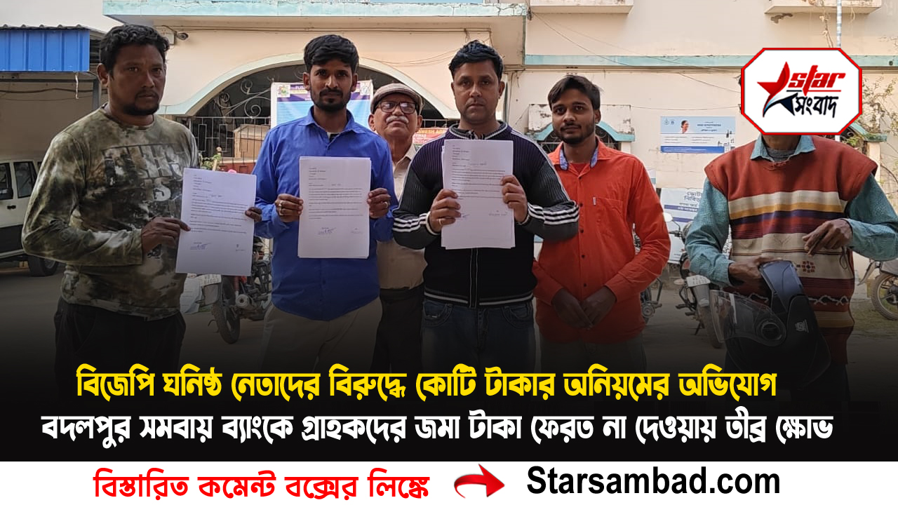 দক্ষিণ দিনাজপুর জেলার বংশীহারী ব্লকের বদলপুর সমবায় সমিতিতে গ্রাহকদের জমানো কোটি টাকা ফেরত না দেওয়ার অভিযোগে চাঞ্চল্য ছড়িয়েছে।সমবায়ের ম্যানেজার ও সম্পাদক পদে রয়েছেন তারা বিজেপি ঘনিষ্ঠ নেতা বলেই পরিচিত বলে অভিযোগ।দীর্ঘদিন ধরে গ্রাহকদের জমা করা টাকা ফিরিয়ে দিচ্ছেন না বলে দাবি করেছেন অসংখ্য গ্রাহকেরা।গ্রাহকদের অভিযোগ,তিলে তিলে জমানো টাকা ফেরত চাইতে গেলে ম্যানেজার সম্পাদককে দেখাচ্ছেন, আবার সম্পাদক ম্যানেজারকে।ফলে দীর্ঘদিন ধরেই টাকা পাওয়ার জন্য হেনস্তার শিকার হতে হচ্ছে বলে তাদের দাবি।বাধ্য হয়ে তারা আরসিএস ও সিআই দপ্তরে লিখিত অভিযোগ দায়ের করেছেন।
