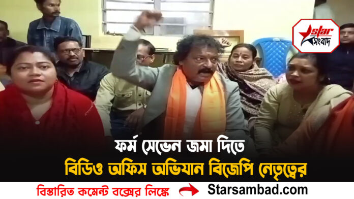 ফর্ম সেভেন জমা দিতে সরাসরি বিডিও অফিস অভিযান বিজেপি নেতৃত্বের। বৃহস্পতিবার বিজেপি নেতা কর্মীদের নিয়ে নেতারা ক্ষোভ প্রকাশ করেন ব্লকের সরকারি আধিকারিকদের সামনেও। বিজেপি নেতা মানস ঘোষের দাবি নির্বাচন কমিশনের নিয়ম অনুযায়ী আমরা ফর্ম সেভেন ফিলাপ করে সংশ্লিষ্ট বিএলওদের কাছে গেলে তাঁরা ফরম জমা নিচ্ছেন না। বাধ্য হয়ে আমাদের বিডিও অফিসে আসতে হল। প্রশাসনের কাদের আঙ্গুলি হেলনে এই কার্যকলাপ করছেন বিএলওরা তা নিয়ে আমরা সন্দিহান। আমরা চাই ভুয়ো ভোটার, মৃত ভোটাররা খসড়া তালিকা থেকে বাদ যাক। এরজন্য কমিশনের নিয়ম অনুযায়ী আমরা ফরম সেভেন ফিলাপ করলেও তা জমা নেওয়া হচ্ছে না। তবে আমরা এসব মেনে নিচ্ছি না। তাই এদিনের এই প্রতিবাদ কর্মসূচী।