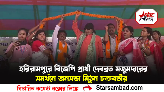 সোমবার দুপুরে দক্ষিণ দিনাজপুর জেলার হরিরামপুর বিধানসভার বিজেপির প্রার্থী দেবব্রত মজুমদারের সমর্থনে হরিরামপুরের এ এস ডি এম মাঠে নির্বাচনী জনসভা করতে আসেন অভিনেতা তথা বিজেপি নেতা মিঠুন চক্রবর্তী।হেলিকপ্টারে চেপে এদিন দুপুর একটা নাগাদ হরিরামপুরে পৌঁছান মিঠুন চক্রবর্তী। যার পরে মঞ্চে বক্তব্য দিতে গিয়ে একাধিক প্রসঙ্গ তুলে ধরেন।