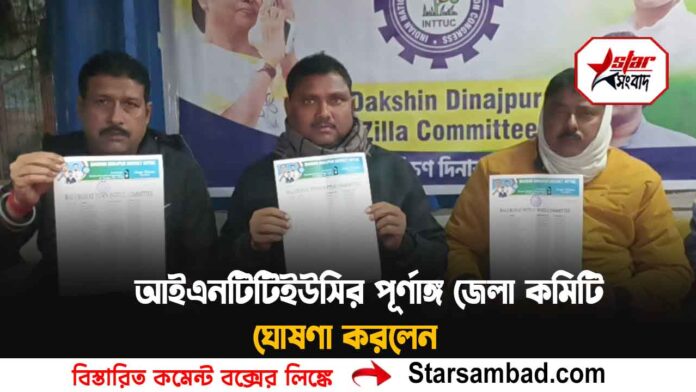 বিধানসভা নির্বাচনের আগে সাংগঠনিক শক্তি বাড়াতে দক্ষিণ দিনাজপুরে আইএনটিটিইউসির পূর্ণাঙ্গ জেলা কমিটি ঘোষণা করলেন জেলা সভাপতি নামিজুর রহমান