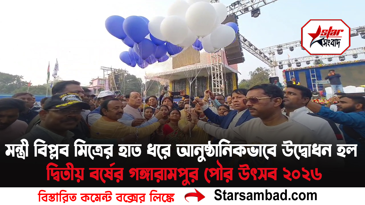 রাজ্যের ক্রেতা সুরক্ষা দপ্তরের মন্ত্রী বিপ্লব মিত্রের হাত ধরে আনুষ্ঠানিকভাবে উদ্বোধন হলো দক্ষিণ দিনাজপুর জেলার গঙ্গারামপুরের দ্বিতীয় বর্ষের গঙ্গারামপুর পৌর উৎসব ২০২৬। সংস্কৃতি, ঐতিহ্য ও আনন্দের রঙে রঙিন এই পৌর উৎসব ১৭ ও ১৮ জানুয়ারি শনি ও রবিবার গঙ্গারামপুর ফুটবল ময়দানে অনুষ্ঠিত হয়েছে।গঙ্গারামপুর পৌরসভার চেয়ারম্যান প্রশান্ত মিত্রের উদ্যোগে আয়োজিত এই উৎসবকে কেন্দ্র করে ইতিমধ্যেই শহরজুড়ে উৎসবের আমেজ।শনিবার দুপুরে নিউ মার্কেট ময়দান থেকে গঙ্গারামপুর ফুটবল ময়দান পর্যন্ত এক বর্ণাঢ্য শোভাযাত্রার মাধ্যমে উৎসবের সূচনা হয়। সাদা পায়রা উড়িয়ে ও ফিতা কেটে অনুষ্ঠানের সূচনা করেন রাজ্যের ক্রেতা সুরক্ষা দপ্তরের মন্ত্রী বিপ্লব মিত্র। সেখানে পৌরসভার চেয়ারম্যান প্রশান্ত মিত্র, ভাইস চেয়ারম্যান জয়ন্ত কুমার দাস, পৌর উৎসব কমিটি অন্যতম কর্মকর্তা সুদীপ্ত মুখার্জী, জেলা পরিষদের সভাধিপতি চিন্তামনি বিহা, গঙ্গারামপুর কলেজের প্রিন্সিপাল এ জানা, কলেজ পরিচালনা সমিতর সভাপতি পরিতোষ দত্ত ,বিভিন্ন ওয়ার্ডের কাউন্সিলর, পৌরসভার এক্সিকিউটিভ অফিসার, থেকে শুরু করে বিশিষ্টজনেরা উপস্থিত ছিলেন। শহর এলাকা বহু স্কুলের ছাত্র ছাত্রী থেকে সমাজকর্মীরা এদিনের এই মিছিলের অংশগ্রহণ করেন। তুলে ধরা হয় শহরের একাধিক উন্নয়নমূলক বিষয় গুলোও। স্থানীয় শিল্পীদের মনোজ্ঞ সাংস্কৃতিক অনুষ্ঠান,খ্যাতনামা শিল্পীদের লোকসংগীত ও নৃত্যানুষ্ঠান