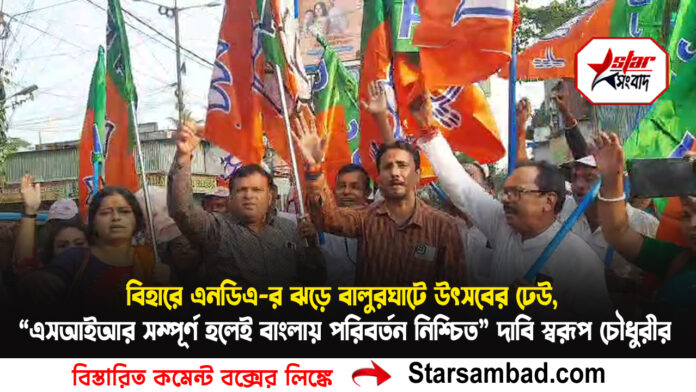 বিহারে এনডিএ-র ঝড়ে বালুরঘাটে উৎসবের ঢেউ, “এসআইআর সম্পূর্ণ হলেই বাংলায় পরিবর্তন নিশ্চিত”— দাবি স্বরূপ চৌধুরীর