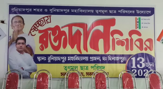 বুনিয়াদপুর শহর ও বুনিয়াদপুর তৃণমূল ছাত্র পরিষদের সহযোগিতায় রক্তদান শিবিরের আয়োজন করা হল বুনিয়াদপুর মহাবিদ্যালয়ে।
