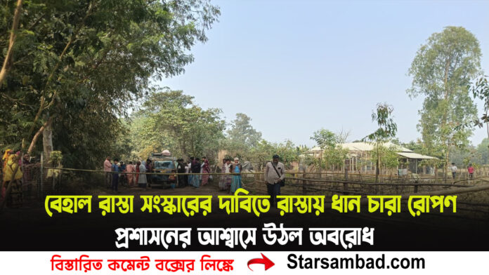 Home উত্তর বাংলা দক্ষিণ দিনাজপুর বেহাল রাস্তা সংস্কারের দাবিতে রাস্তায় ধান চারা রোপণ, প্রশাসনের আশ্বাসে উঠল অবরোধ