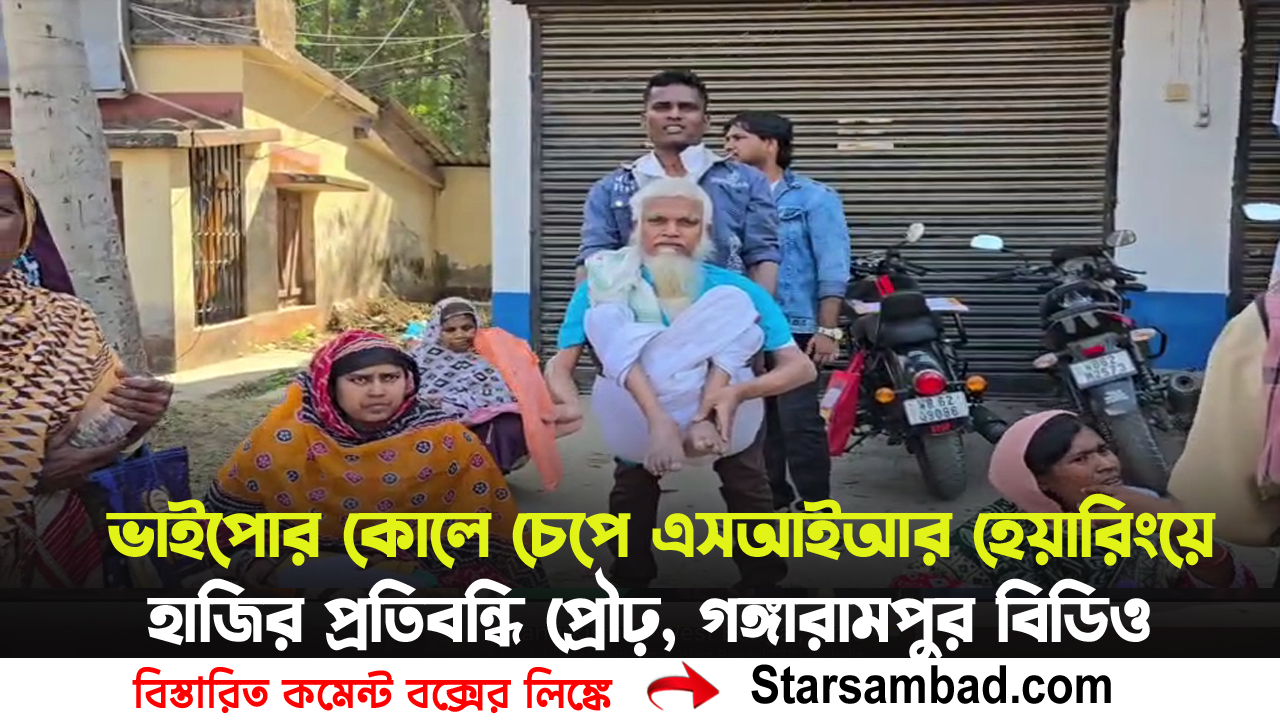 এসআইআর হেয়ারিং সংক্রান্ত নোটিস পাওয়ার পর বৃহস্পতিবার বেলা দেড়টা নাগাদ আব্দুল গনি তাঁর ভাইপোর সহায়তায় গঙ্গারামপুর বিডিও অফিসে আসেন। নিজে চলাফেরা করতে না পারায় ভাইপোর কোলে চেপেই অফিস চত্বরে প্রবেশ করেন তিনি। এই দৃশ্য চোখে পড়তেই সেখানে উপস্থিত অন্যান্য আবেদনকারী ও সাধারণ মানুষের মধ্যে ব্যাপক চাঞ্চল্যের সৃষ্টি হয়।