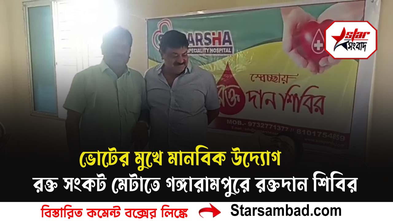 বিধানসভা নির্বাচনের আবহে যখন জেলার বিভিন্ন হাসপাতালে তীব্র রক্ত সংকট দেখা দিয়েছে, ঠিক সেই সময় মানবিক দৃষ্টান্ত স্থাপন করল গঙ্গারামপুর শহরের সুপরিচিত সুস্পর্শ হেলথ কেয়ার ট্রাস্ট। সংস্থার উদ্যোগে গঙ্গারামপুর পুরসভার বিপরীতে তাদের নিজস্ব প্রতিষ্ঠানে আয়োজন করা হয় এক রক্তদান শিবির।