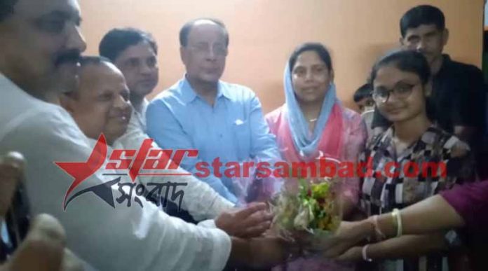 মালদা:– রাজ্যের তিন মন্ত্রী সাবিনা ইয়াসমিন, গোলাম রাব্বানী ও বিপ্লব মিত্র শনিবার সন্ধ্যায় সভাপতি মাধ্যমিক পরীক্ষায় রাজ্যে দ্বিতীয় এবং মেয়েদের মধ্যে প্রথম স্থানানধিকারী কৌশিকী সরকার তার বাড়ি গাজোলে গিয়ে তাঁকে সংবর্ধনা দেন ফুলের তোড়া এবং মিষ্টি মুখ করিয়ে। পাশাপাশি পড়াশোনার বই দিয়ে সংবর্ধনা দেন। তার পরিবারের সাথে কথা বলেন। মাধ্যমিক পরীক্ষায় রাজ্যে দ্বিতীয় ও মেয়েদের মধ্যে প্রথম স্থান অধিকার করেছেন গাজোলের আদর্শ বাণী একাডেমী স্কুলের ছাত্রী কৌশিকী সরকার। তার বাড়ি গাজলের বিধান পল্লী এলাকায়। তার বাবা মিলন সরকার হাইস্কুলের শিক্ষক মা প্রাথমিক বিদ্যালয়ের শিক্ষক। সে রাজ্যে তথা মালদার মুখ উজ্জ্বল করেছে। সে পড়াশোনা করে ডাক্তার হতে চায় সেটা তার ভাল উদ্যোগ। মাননীয় মুখ্যমন্ত্রী মমতা বন্দ্যোপাধ্যায় ছাত্র-ছাত্রীদের জন্য বিভিন্ন উন্নয়নমূলক প্রকল্প চালু করেছেন যাতে ছাত্রছাত্রীরা উচ্চ শিক্ষা লাভ করতে পারেন সর্বসম্মতভাবে সহযোগিতার আশ্বাস দেন।