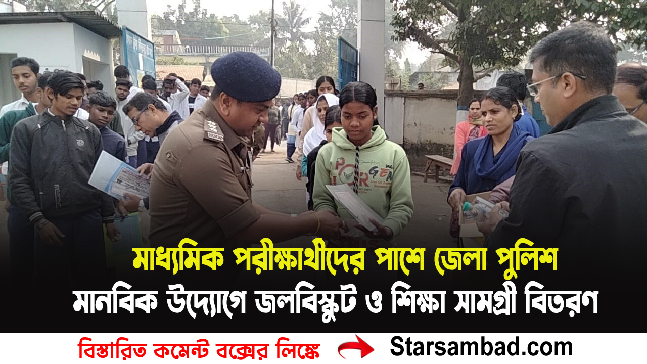 Home উত্তর বাংলা দক্ষিণ দিনাজপুর মাধ্যমিক পরীক্ষার্থীদের পাশে জেলা পুলিশ, মানবিক উদ্যোগে জল–বিস্কুট ও শিক্ষা সামগ্রী বিতরণ