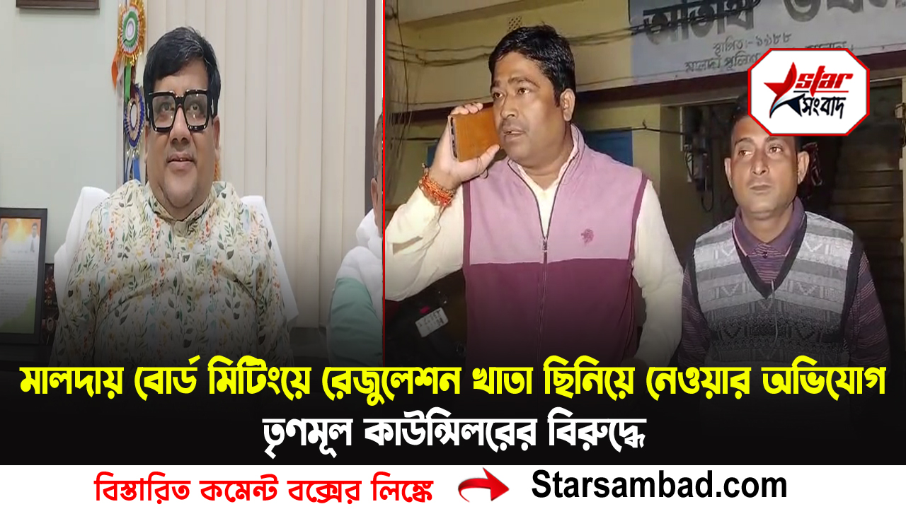 মালদায় বোর্ড মিটিংয়ে রেজুলেশন খাতা ছিনিয়ে নেওয়ার অভিযোগ তৃণমূল কাউন্সিলরের বিরুদ্ধে