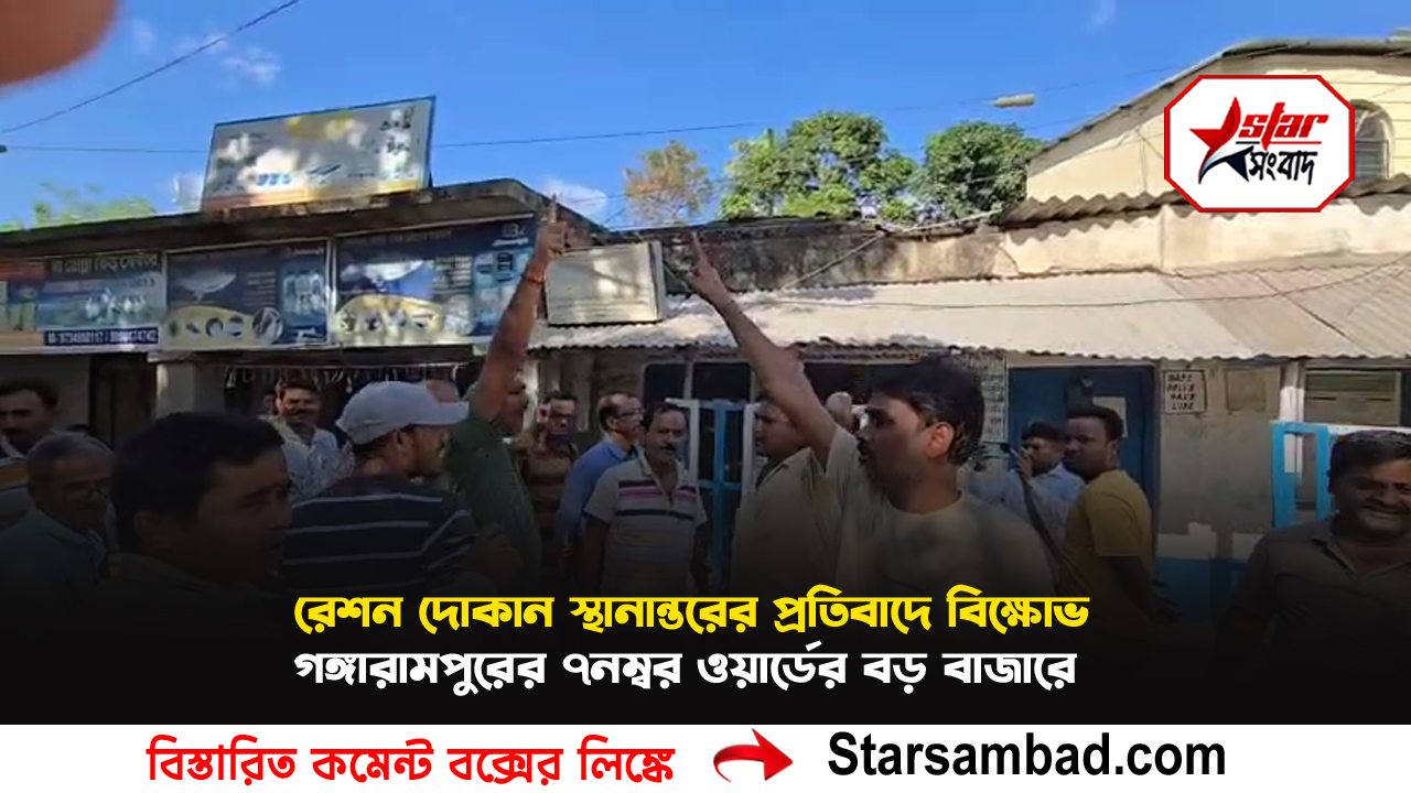রেশন দোকান স্থানান্তরের প্রতিবাদে বিক্ষোভ গঙ্গারামপুরের ৭নম্বর ওয়ার্ডের বড় বাজারে