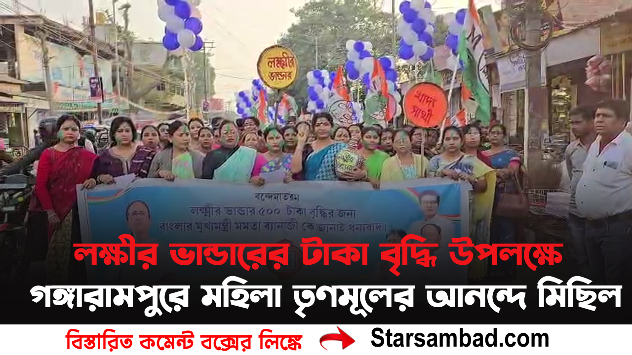 লক্ষীর ভান্ডারের টাকা বৃদ্ধি উপলক্ষে গঙ্গারামপুরে মহিলা তৃণমূলের আনন্দে মিছিল