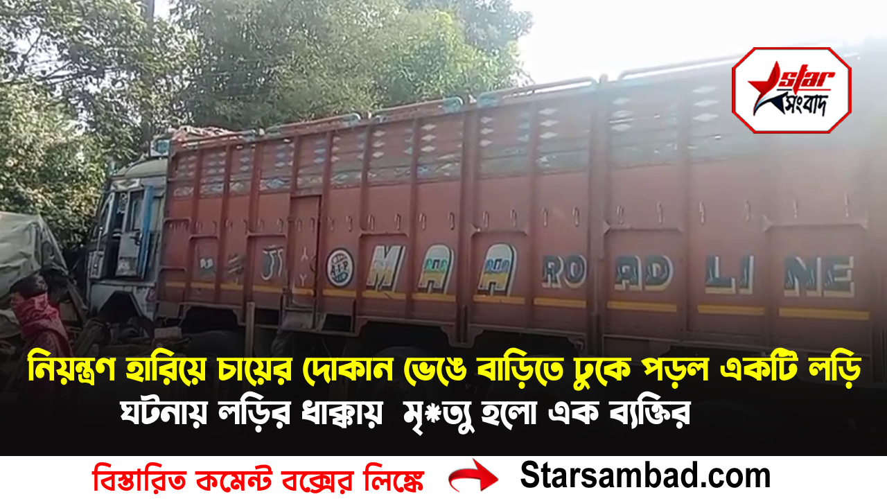 নিয়ন্ত্রণ হারিয়ে চায়ের দোকান ভেঙে বাড়িতে ঢুকে পড়ল একটি লড়ি,ঘটনায় লড়ির ধাক্কায় মৃত্যু হলো এক ব্যক্তির। ঘটনাটি দক্ষিণ দিনাজপুর জেলার হরিরামপুর থানার পুন্ডরী গ্ৰাম পঞ্চায়েতের মেহেন্দি পাড়া গ্রামের ঘটনা। এমন ঘটনার খবর পেয়ে তড়িঘড়ি ঘটনাস্থলে হরিরামপুর থানার পুলিশ পৌঁছে মৃতদেহ উদ্ধারের পাশাপাশি পুরো ঘটনার তদন্ত শুরু করেছেন হরিরামপুর থানার পুলিশ।