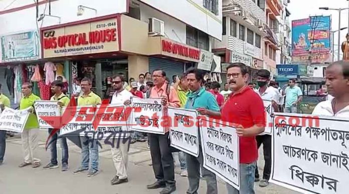বুধবার রায়গঞ্জের বাজিতপুরে খবর সংগ্রহ করতে গিয়ে এক পুলিশ কর্মীর দ্বারা আক্রান্ত হয়েছিলেন প্রবীন সাংবাদিক সুদীপ চক্রবর্তী সহ পাঁচজন। এদের মধ্যে দুজনকে গুরুতর আহত অবস্থায় রায়গঞ্জ গভর্মেন্ট মেডিকেল কলেজ হাসপাতালে ভর্তি করা হয়। এই ঘটনা নিয়ে অভিযুক্ত পুলিশ কর্মী দেবব্রত রায় সহ বেশ কয়েকজনের বিরুদ্ধে রায়গঞ্জ থানায় লিখিত অভিযোগ দায়ের করা হলেও রায়গঞ্জ থানার পুলিশ উদ্দেশ্য প্রনোদিত ভাবে মামলা লঘু করে অভিযুক্ত দেবব্রত রায়কে বেল পাইয়ে দেওয়ার ব্যাবস্থা করে। পুলিশের এই ভূমিকায় সংবাদ মাধ্যমই পুলিশের দ্বারা আক্রান্ত হওয়ার ঘটনা ঘটল বলে অভিযোগ তোলেন উত্তর দিনাজপুর প্রেসক্লাবের সাংবাদিকেরা। এদিন রায়গঞ্জের ঘড়িমোড়ে অবস্থান বিক্ষোভ কর্মসূচি পালন করেন রায়গঞ্জ, কালিয়াগঞ্জ ও ইটাহারের সাংবাদিকেরা। এছাড়াও জেলার ইসলামপুর মহকুমা প্রেসক্লাব থেকে বিক্ষোভ কর্মসূচি পালন করা হয়। এদিকে শিলিগুড়িতেও উত্তরকন্যার সামনে অবস্থান বিক্ষোভ কর্মসূচি পালন করে সাংবাদিকেরা।